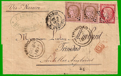 Tarif du 1er juillet 1871 pour Trinidad Affranchissement à 1,00 F