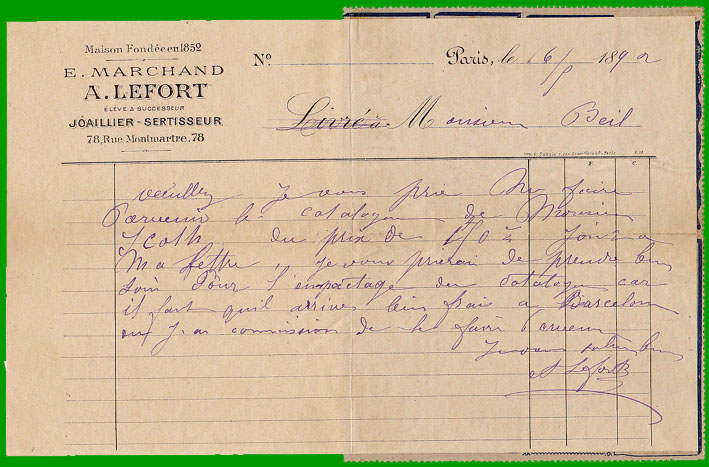 vendues à prix réduit A l'intérieur, la carte-lettre ci-dessus comporte une lettre à en tête du joaillier-sertisseur A. Lefort, successeur de E. Marchand, 78 rue Montmartre. |