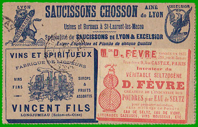 vendues à prix réduit Au verso, la carte-lettre ci-dessus comporte trois encarts publicitaires. |