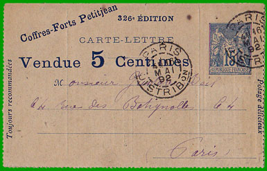 en vente ou la livraison gratuite de lettres, cartes-lettres, cartes postales