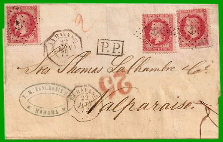 Les lettres à destination du Chili ne pouvaient être affranchies que jusqu'au port de débarquement