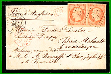 Après réflexion, je me suis décidé à incorporer un chapitre colonies françaises pour la période classique (1849-1876), avec les tarifs auxquels j'ai pu avoir accès "sans trop" de difficultés, et plus particulièrement à partir de 1859 (courrier affranchi avec des timbres des colonies). Je vous demande de me pardonner d'avance pour le flou que j'ai pu laisser pour certains tarifs.