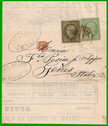 | Tarif du 1er octobre 1861 (voie de mer, paquebots de commerce) | 40 g. | 10 c. | 40 c. | 10 c. |