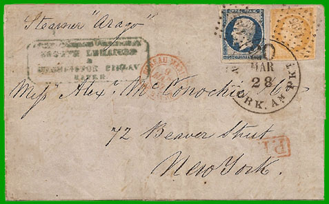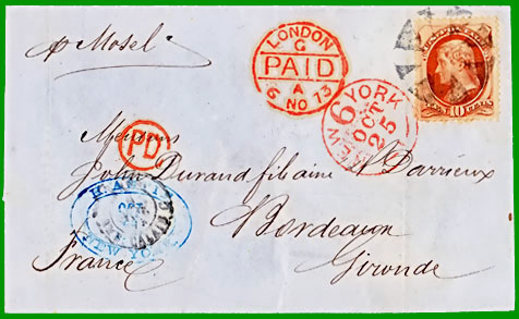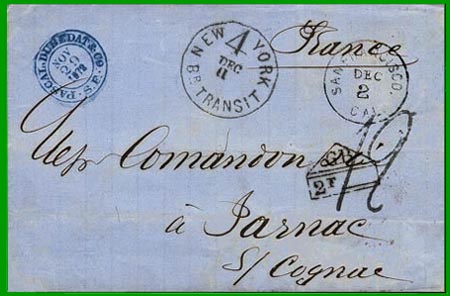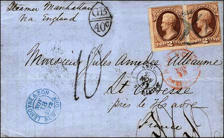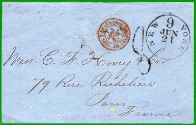 débarquement et taxées à l'arrivée par la poste américaine (jusqu'en 1854,