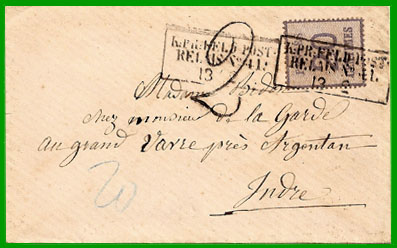 Cette lettre a été postée à Versailles, où était basé le Feldpost Relais N°41, le 13 février. Elle a été acheminée sur Argentan à partir du 25 février. |