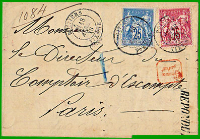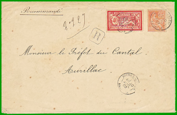 : 30 c. Cette lettre a été posté le 20 juillet 1902, en recommandé. Elle porte la griffe " R", frappée à l'encre noire qui est obligatoire depuis le 16 mars 1895. |