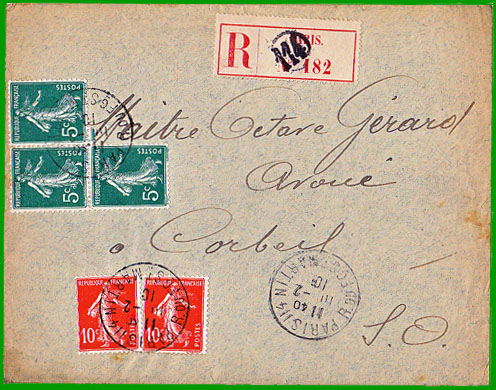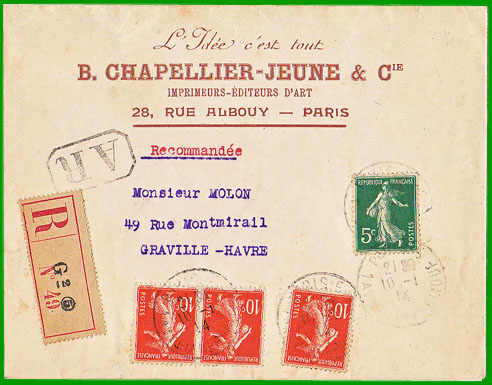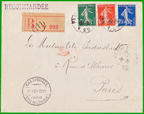 : 10 c. Cette lettre postée à Paris le 12 février 1910, a été expédiée avec la nouvelle étiquette R de recommandation. |