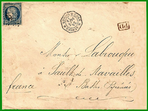 du 1er janvier 1851 au 30 juin 1854 (tarif de la lettre territoriale) |