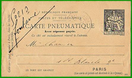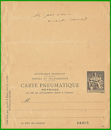 CARTE PNEUMATIQUE AVEC RÉPONSE PAYÉE