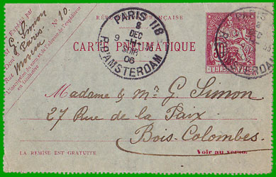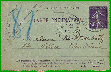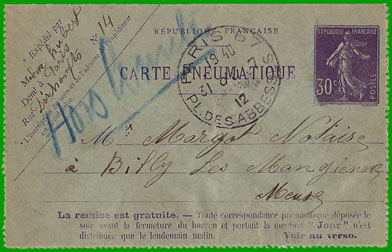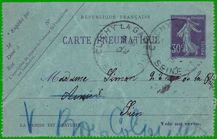 - Carte pneumatique (au lieu de carte-télégramme),