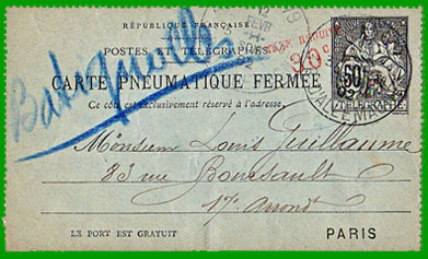 - Carte pneumatique fermée (au lieu de télégramme),Paru au Bulletin Mensuel n° 10, de juillet 1896.