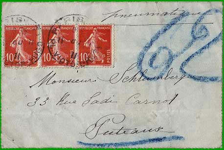 A partir de novembre 1896, la taxe des enveloppes pneumatiques insuffisamment affranchies est égale à l'insuffisance d'affranchissement. |