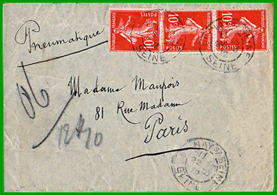 ENVELOPPES PNEUMATIQUES INSUFFISAMMENT AFFRANCHIES |