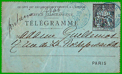 1885, le service des télégrammes spéciaux échangés à l'intérieur de Paris