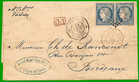 Si vous êtes intéressés par plus de détails sur les tarifs postaux de la Réunion, je vous recommande le livre de Benoît Chandanson sur l'île de la Réunion (voir bibliographie). |