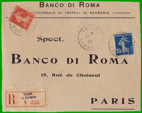 : 10 c. Cette lettre recommandée a été postée à Tripoli le 15 septembre 1910. |