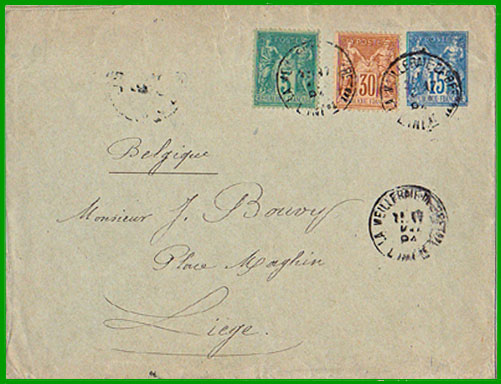 janvier 1876 Affranchissement à 20 c. Cette lettre, postée à Anzin le 13 juillet 1885, est arrivée à Tournai le 14 juillet 1885. |