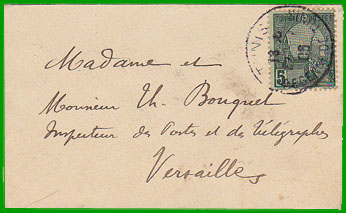 juillet 1888 Affranchissement à 5 c. Cette lettre, affranchie au tarif des imprimés sous lettre non close, a été postée à Tunis le 22 janvier 1906, à destination de Versailles. |