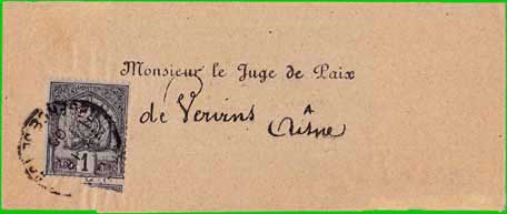 juillet 1888 Affranchissement à 1 c. Cet imprimé, affranchi au tarif des imprimés sous bandes, a été posté à Tunis le 18 mai 1900, à destination de Vervins. |