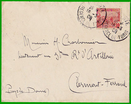 1906 Affranchissement à 10 c. Cette lettre a été postée à Bizerte le 18 mars 1908. |