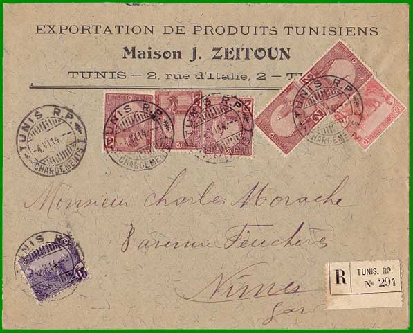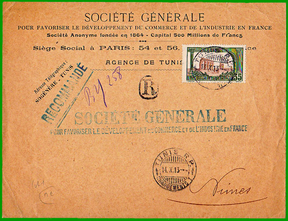 en recommandé à "Tunis R. P." le 14 octobre 1913 à
