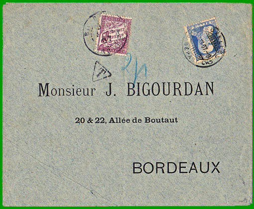 A partir du 1er mai 1910, les lettres non affranchies ou insuffisamment affranchies sont taxées au double de l'insuffisance partielle ou totale d'affranchissement. |