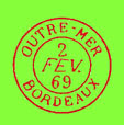 Les lettres ayant voyagé par bâtiments du commerce portent en général un cachet à date d'entrée rouge "OUTRE-MER" avec le nom du port de débarquement, comme le modèle ci-dessous :