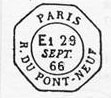 Ce cachet rond existe seulement pour les bureaux de la R. St-Honoré, de la Pl. du Théâtre-Français et de la R. de Cléry.