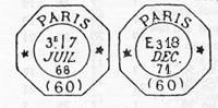 - Indication ordinale : 1E, 2E ou 3E (Cachets à date octogonaux).